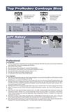 Mont.), the Eastern Montana (Miles City) Fair Rodeo and the Gem State Stampede (Coeur D Alene, Idaho). Co-champ at theWainwright (Alberta) Stampede and the NicolaValley Pro Rodeo (Merritt, British Columbia). ★ ★ 2016: Placed in three rounds of the Wrangler NFR to tie for second place in the average. Finished eighth in the world standings with $159,508. Won the Eugene (Ore.) Pro Rodeo, the Bruce (Alberta) Stampede, the Wyoming (Douglas) State Fair & Rodeo and the Nicola Valley Pro Rodeo (Merritt, British Columbia) ★ ★ 2015: Finished 61st in the world standings with 11,484 ★ ★ 2014: Scored 668.5 on nine head to rank 13th in the average at Wrangler NFR. Won Lea County Fair & PRCA Rodeo (Lovington, N.M.),Yellowstone River Round-up (Billings, Mont.), Larimer County Fair & Rodeo (Loveland, Colo.), Arcadia (Fla.)All-FloridaChampionshipRodeo,ATributetotheGreatAmericanCowboy(Casper,Wyo.)andtheMaahDaahHey Stampede(GrassyButte,N.D.).Co-champattheOkotoks(Alberta)ProRodeo.Was15th inworldstandingswith$70,208 ★ ★ 2013: Placed in five rounds of the Wrangler NFR on his way to finishing third in the average and seventh in the world standings with $143,924.Won the Clovis (Calif.) Rodeo, the Red Bluff (Calif.) Round-Up, theYellowstone River Round-Up (Billings, Mont.), the Dinosaur Roundup Rodeo (Vernal, Utah), the Buc Days ProRodeo (Corpus Christi, Texas) and the Pincher Creek (Alberta) ProRodeo. Co-champion at the San Antonio (Texas) Stock Show and Rodeo ★ ★ 2012: Won Round 10 on Lancaster & Pickett Pro Rodeo’s Top Flight and placed in five other rounds at his first Wrangler NFR to finish fourth in the world standings with $199,304. Won Cody (Wyo.) Stampede; Larimer County Fair & Rodeo (Loveland, Colo.); Atlantic City (N.J.) Boardwalk Rodeo, Guymon (Okla.) Pioneer Days Rodeo, Wild Rogue ProRodeo (Central Point, Ore.), Pincher Creek (Alberta) ProRodeo andWhoop-Up Days (Lethbridge, Alberta) ★ ★ 2011: Finished 20th in the world standings with $47,845. Won the bareback riding at the Bowman (N.D.) County ProRodeo. Won the all-around and bareback riding at the Pikuni ProRodeo (Browning, Mont.). Won the bull riding and the all-around at the Tulsa (Okla.) State Fair PRCA Rodeo ★ ★ 2010: Won the year-end all-around title in the Montana Circuit, becoming the first roughstock cowboy to do so since Bob Schall in 1993. Won the all-around at theTulsa (Okla.) State Fair PRCA Rodeo and the Belt (Mont.) Rodeo. Won the bareback riding at the ChisholmTrail Stampede (Duncan, Okla.), the Drummond (Mont.) PRCA Rodeo, the EnergyTown Pro Rodeo (Gillette,Wyo.), the Fallon County Fair & Rodeo (Baker, Mont.), the Mo Betta Stampede and Native American Heritage Days (Anadarko, Okla.) and the Chouteau County Fair & Rodeo (Fort Benton, Mont.). Co-champion at the Yellowstone Stampede Pro Rodeo (Billings, Mont.) and theWest Texas Fair & Rodeo (Abilene). Won the bull riding at the Dawson County Fair & Rodeo (Glendive, Mont.), the Tulsa (Okla.) State Fair PRCA Rodeo and the Chouteau County Fair & Rodeo (Fort Benton, Mont.). Earned $23,614 while competing on his permit Awards Resistol Bareback Riding Rookie of the Year, 2011 Amateur National High School Finals Rodeo Bareback Riding Champion, 2009; finished third in NHSFR all-around and sixth in the bareback riding, 2010. College National Finals Rodeo all-around champion, 2011 Personal 5-8, 140 …Wife, Shelby …Mother, Shilo Christman; father, Justin Jarrett (a former bareback rider) … His given name is Greg Duncan Vezain, but he has always gone by J.R. because an aunt took to calling him“Junior”even before he was born … Learned to ride from his maternal uncle, Duncan Vezain, during summers spent in Bridger, Mont … A two-time Wyoming high school wrestling champion at Rocky Mountain High School (Cowley, Wyo.) … Says the sport prepared him for rodeo“because it taught me a lot of mental toughness (and the training produced) a lot of strength”… Attended Kelly Timberman’s rodeo school as a 16-year-old and credits the 2004 world champion with teaching him to ride bareback horses the right way …Transferred from Vernon (Texas) College to Casper (Wyo.) College in 2011 … He started working with leather at 9 years old while in a 4-H program and still enjoys doing it